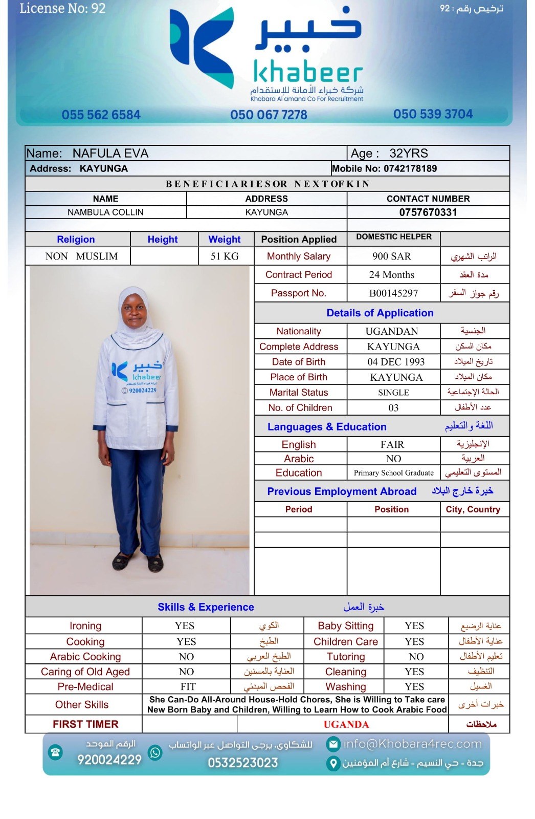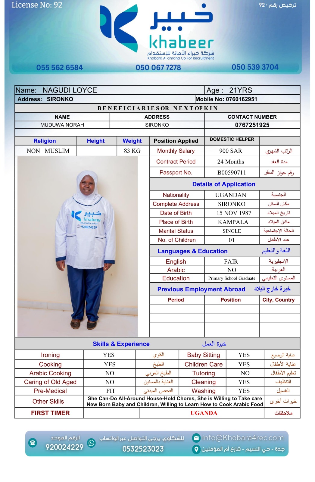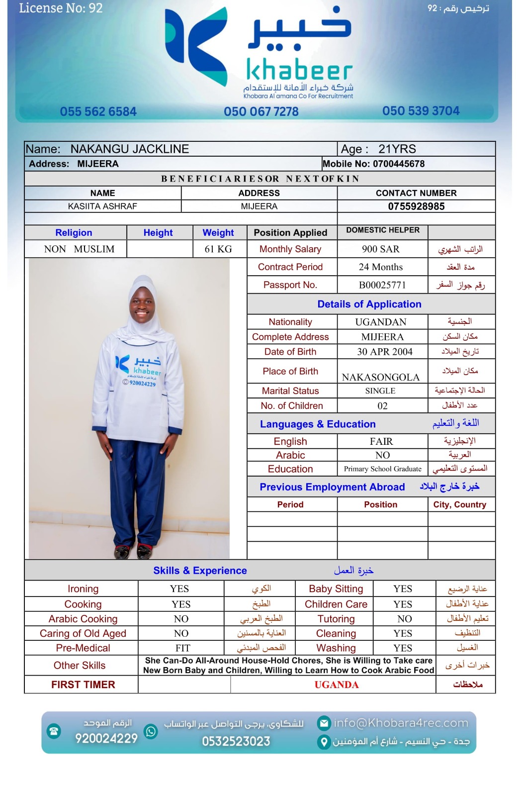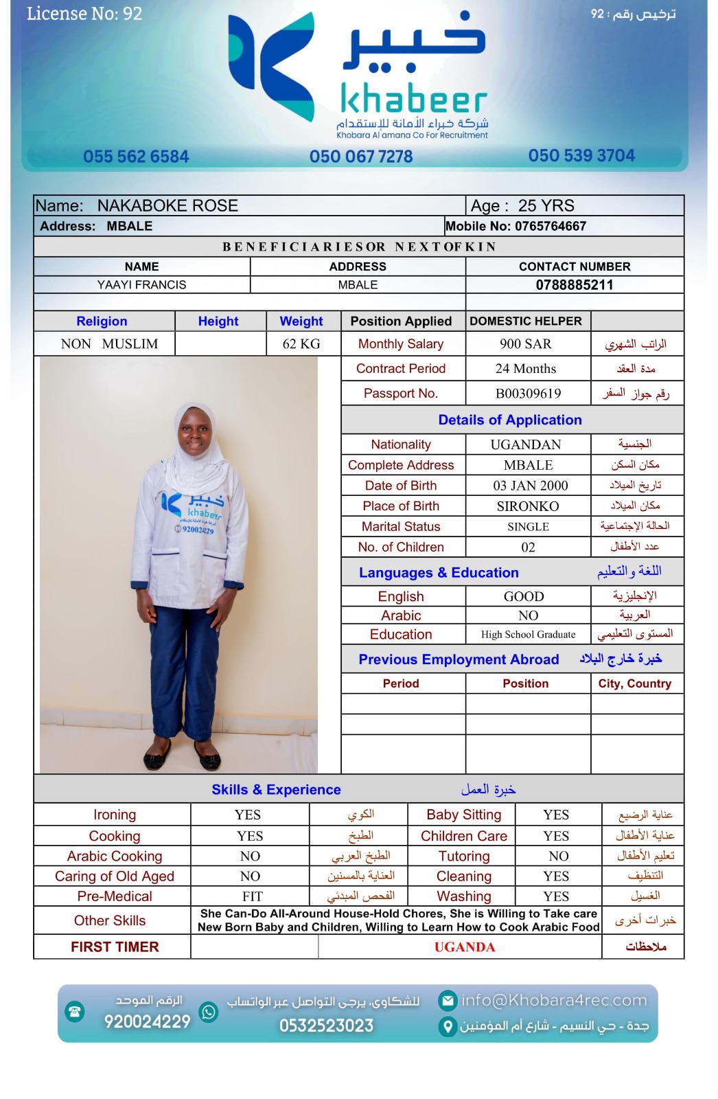 منذ تأسيس شركة خبراء الأمانة للاستقدام في المملكة العربية السعودية، ونحن نعمل بمنتهى الدقة والأمانة؛ مقدمين خدمات استقدام لكافة أنواع العمالة المنزلية والمهنية من جميع الأعمار منها المقيمة ومنها الشغل اليومي ومن جميع الجنسيات الأجنبية وفقًا لقوانين العمل الصادرة من وزارة العمل والتنمية الاجتماعية السعودية بترخيص رقم (92).